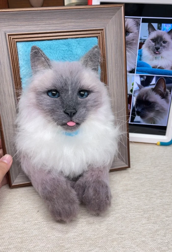 As a needle felting artist, I was approached by Paige for a heartfelt project: creating a portrait of her beloved cat, Charley. This commission was more than just an artistic endeavor; it was about capturing the essence of a cherished relationship that has spanned over 16 years.